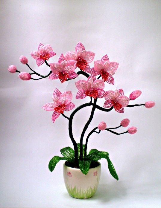Однако мастерицы не могут устоять и очень часто выбирают именно орхидеи. Их отличает нежность небольших по размеру цветков, изящность изгибов стволов. Они неповторимы в качестве украшения помещения.