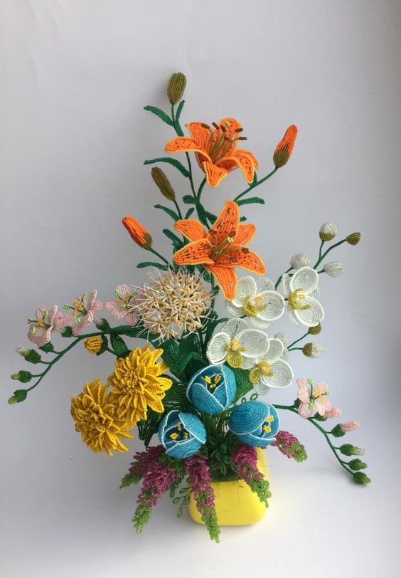 Большим преимуществом всех этих изумительных букетов из бисерных цветов является их долговечность и простота в уходе – их можно аккуратно протирать от пыли и мыть. Они согреют вас своими яркими красками в хмурые зимние дни, украсят будни и создадут праздничное настроение и произведут незабываемое впечатление на гостей вашего торжества. Надеемся, наша подборка вдохновила вас на освоение техник плетения цветов из бисера и создание своих эксклюзивных проектов. И не забывайте, что мастерски созданные из бисера работы могут стать для вас не только красивым хобби, но и дополнительным источником дохода!
