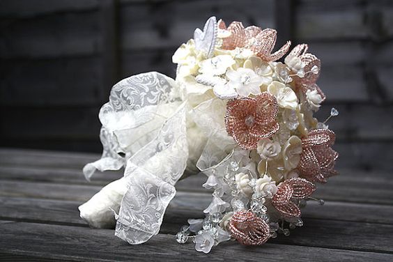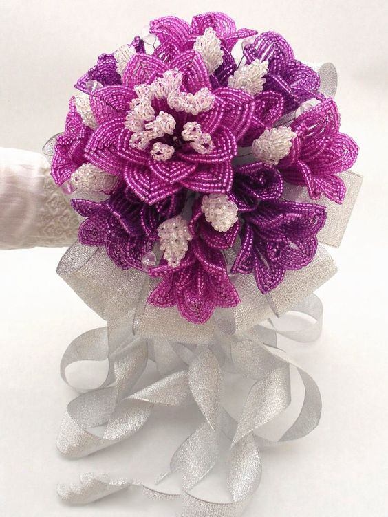 Столь изысканные, симпатичные букетики точно не останутся незамеченными и сделают эффектный акцент в праздничном образе невесты. Иногда девушки делают дополнительный бисерный букет, который, согласно обычаю, невеста бросает своим незамужним подружкам, чтобы предсказать, кому из них следующей предстоит выходить замуж.