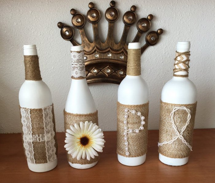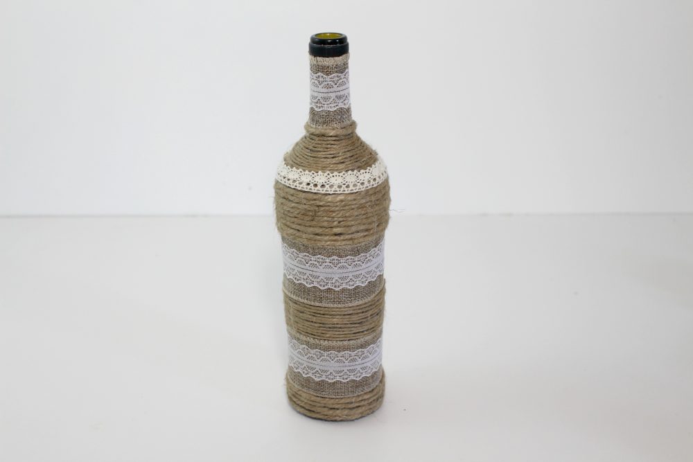 Теперь вы знаете как красиво обмотать бутылку бечевкой, чтобы она стала новым креативным украшением вашего дома.