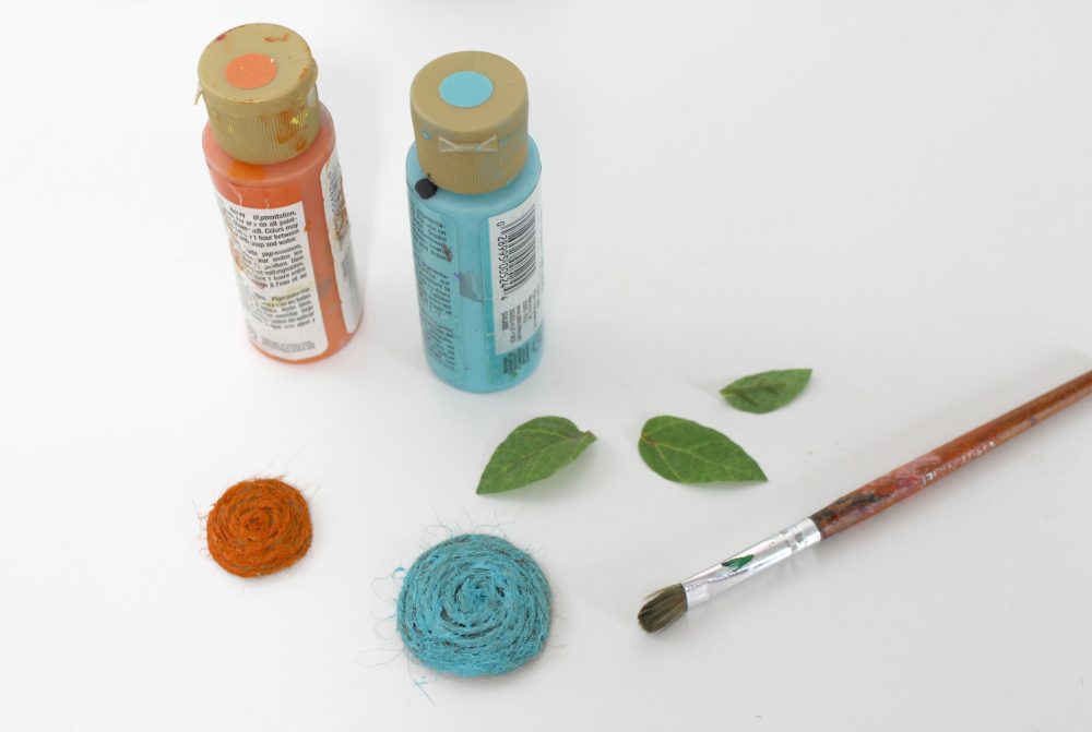 Три небольших искусственных листика для цветков (вы можете вырезать их из ткани, фетра или любого другого материала)