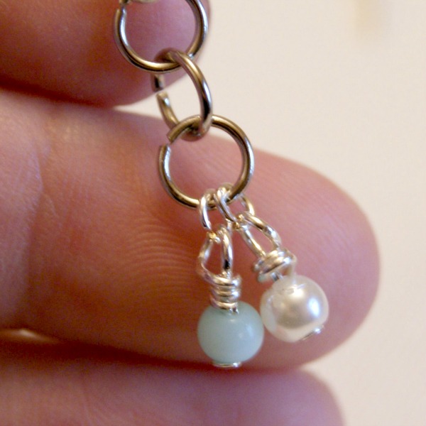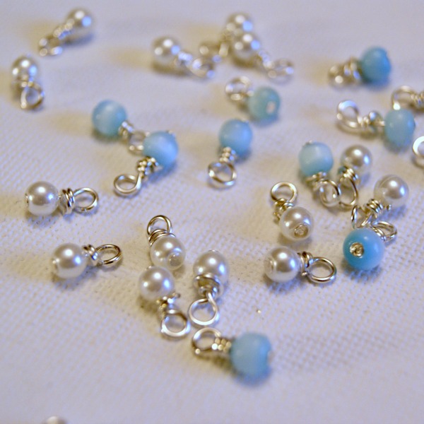 Если окажется, что отрезанный вами хвост все-таки слегка торчит, просто оберните его более плотно с помощью ювелирных плоскогубцев. Нанижите на пины таким же образом все ваши бусины. В нашем случае получилось 26 бусинок-подвесок.