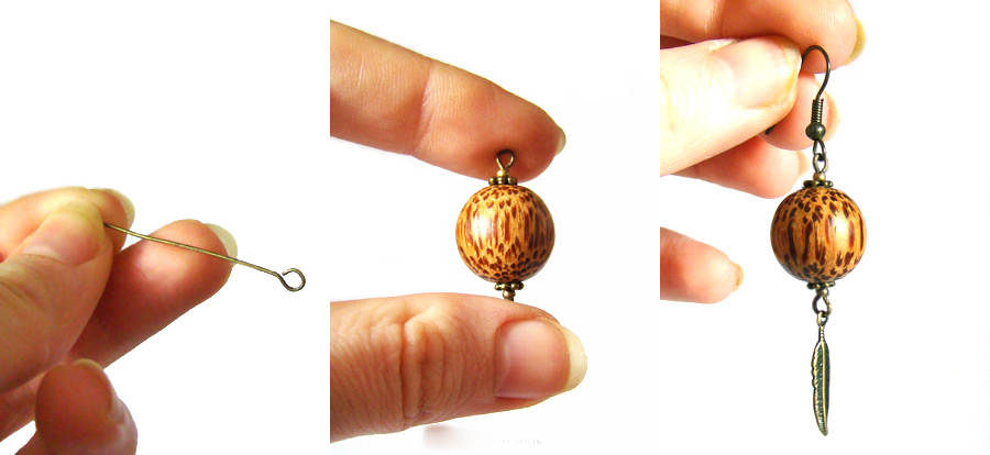 1. Пины с ушком (или петлей) – обычно их используют для изготовления соединительных элементов, для чего на них нанизывают бусину, а потом делают круглогубцами вторую петлю на втором конце. В последствии из таких заготовок собирают сережки, браслеты, бусы или другие аксессуары. Это, наверное, единственный вид фурнитуры для бижутерии, свободно заменяемый простой жесткой проволокой.