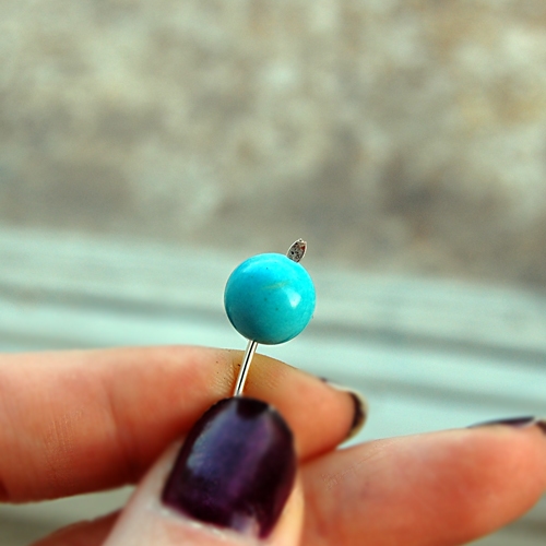 Также стоит обратить внимание, что сложное декоративное окончание можно элементарно сделать самостоятельно, просто надев на обыкновенный пин подходящего размера и формы металлическую бусину (обычно для этого используют узкие рондели).