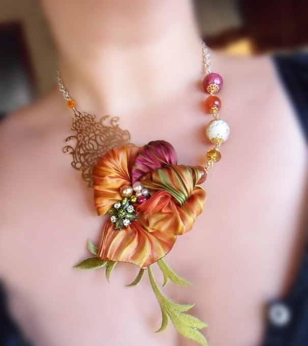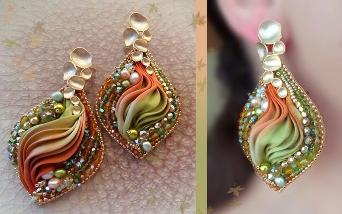 12. Все элементы, получаемые в данной технике, отличаются оригинальностью. Именно эта особенность делает шелковые ленты довольно дорогостоящими, как и созданные с их использованием украшения. Цена на них сравнима с изделиями, включающими драгоценные камни.