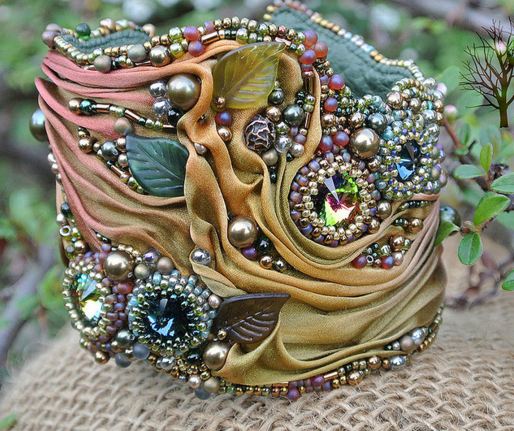 3. Из всемирно известных дизайнеров впервые ленту шибори в свои бисерные украшения включила маэстро бисероплетения Шерри Серафини. На фото – браслет работы этой знаменитой мастерицы.