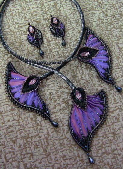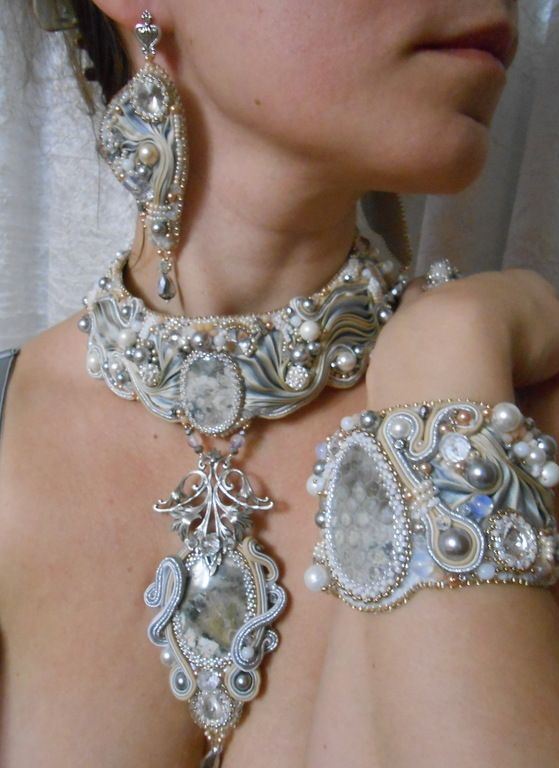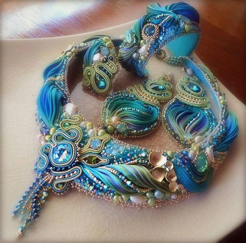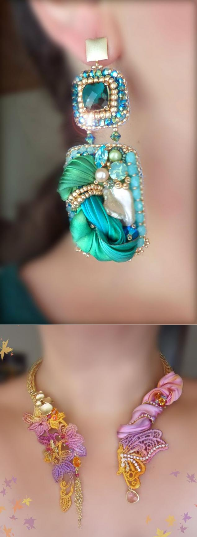 6. Красота и роскошь готовых изделий не может не восхищать. Дополненные качественной фурнитурой, небольшими бусинами, натуральным жемчугом и птичьими перьями, аксессуары получаются объёмными, выразительными и яркими. Из них составляют потрясающие комплекты, достойные внимания самых искушенных любительниц драгоценностей.