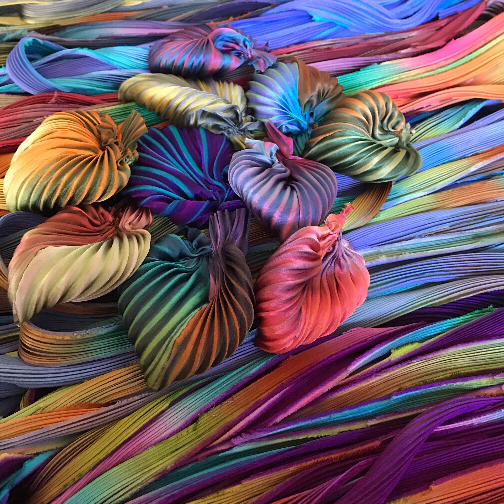 10. Ленточки шибори – это абсолютно ручная, авторская работа, любая лента уникальна, поскольку невозможно получить идеально одинаковый оттенок. Неравномерно окрашенные ленты разных оттенков создают бескрайнее пространство для творчества.