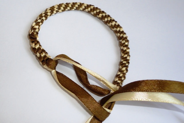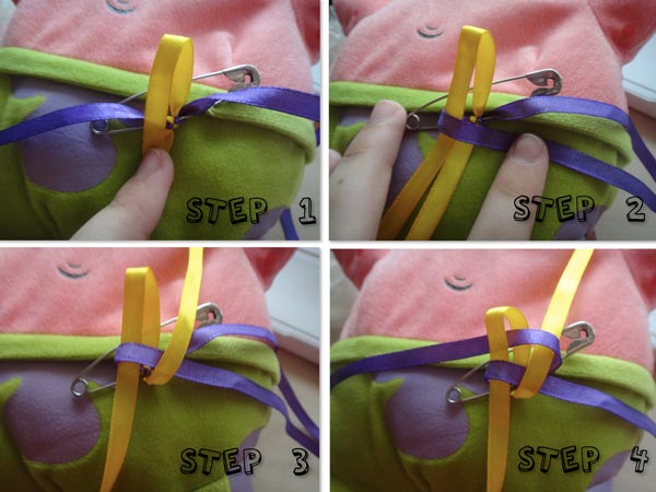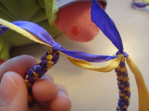 10. Затем завяжите небольшие узелки в конце каждой ленты, чтобы они не выскальзывали.