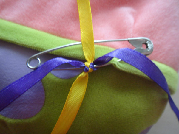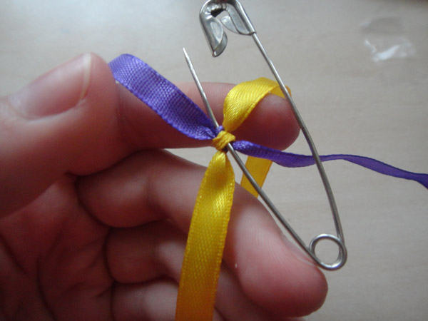 7. Затем прикрепите его к подушке или джинсам. В принципе, вы можете не использовать булавку, а держать браслет в руках, если хотите. Но если вы делаете это впервые, булавка будет лучшим выбором.
