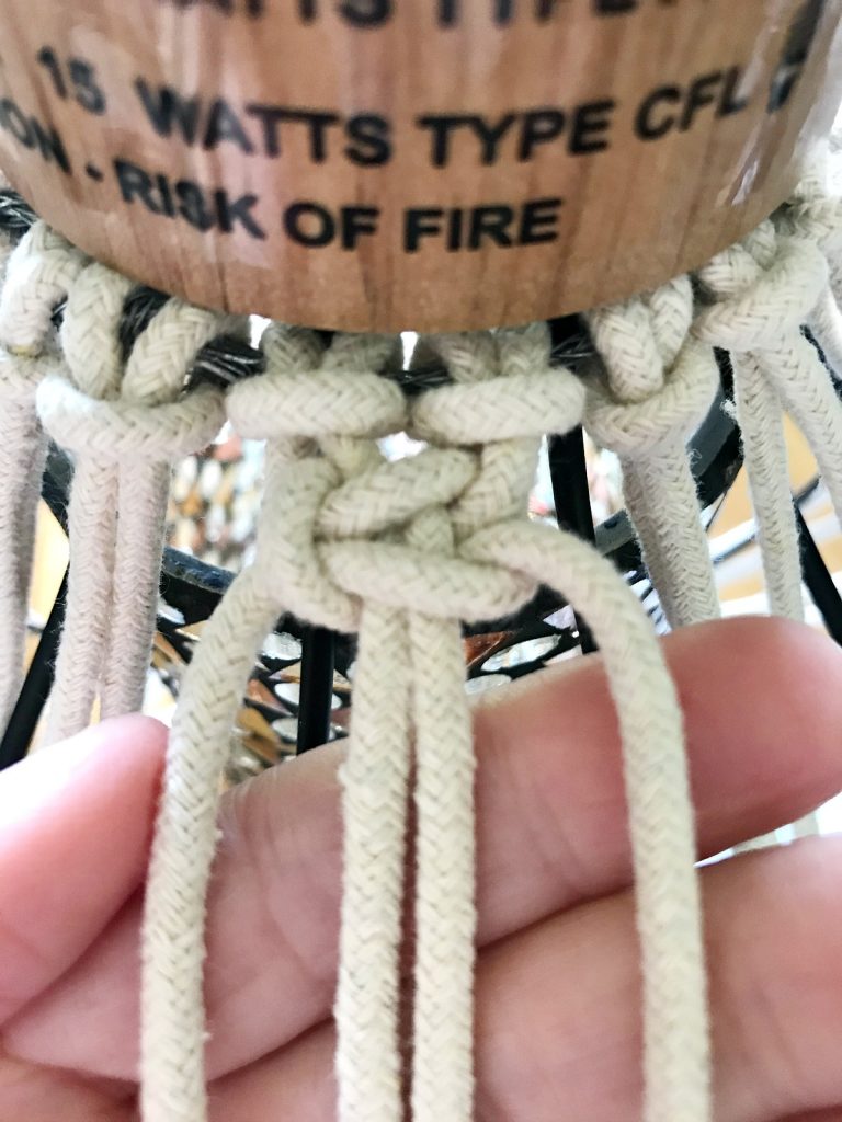 10. Как только вы достигнете дна каркаса, возьмите шнуры и переплетите их с каркасом и сделайте узел как можно более плотным.