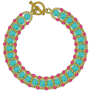 Для базовой конструкции плоского спирального браслета выберите три типа бусинок: круглый сердечник (A), наружная оплетка (B) и соединительный (С). Для типа A мы выбрали 6-миллиметровые круглые бусинки, для B - круглый японский бисер 11-го размера, а для C - 3-миллиметровые круглые огненные блестящие бусинки.