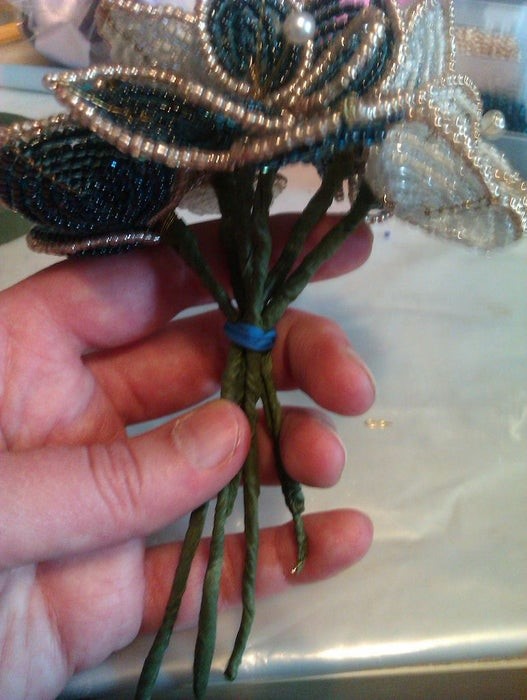 Теперь все, что вам остается, это поместить свой готовый букет цветов из бисера на костюм, или держать его в руках и выглядеть сияющими!
