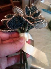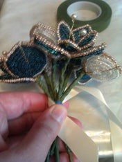 Вам нужно будет делать стебли (петли) на своих цветах подлиннее, особенно, если у вас большой букет цветов. Если вы обнаружите, что они недостаточно длинные, просто соберите всю лишнюю проволоку и вытяните ее в продолжение стеблей – прежде, чем наносить цветочную ленту.