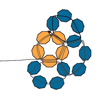 18. Проденьте нить через последнюю бисеринку из первого кольца.