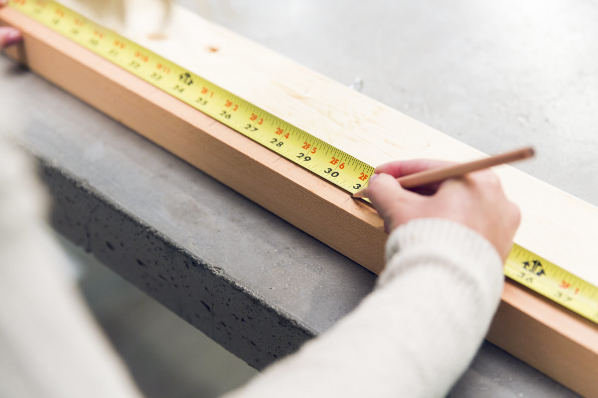 Карандашом отметьте расстояние в 2,5 см от одного конца на короткой грани планки, затем делайте отметки каждые 6 см, пока не дойдете до участка примерно 2,5 см от противоположного конца планки.
