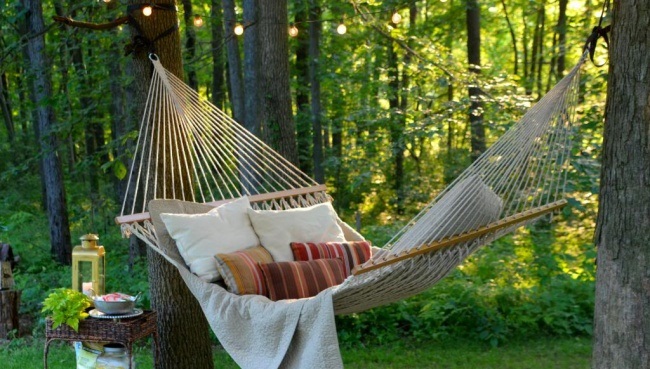 И вот: ваш гамак готов к использованию, а вы теперь знаете, как самостоятельно сшить гамак для комфортного отдыха в любых условиях. Наслаждайтесь расслабленной негой в своем чудесном самодельном гамаке, с книгой в руках, в окружении декоративных подушек, одеял и солнца!