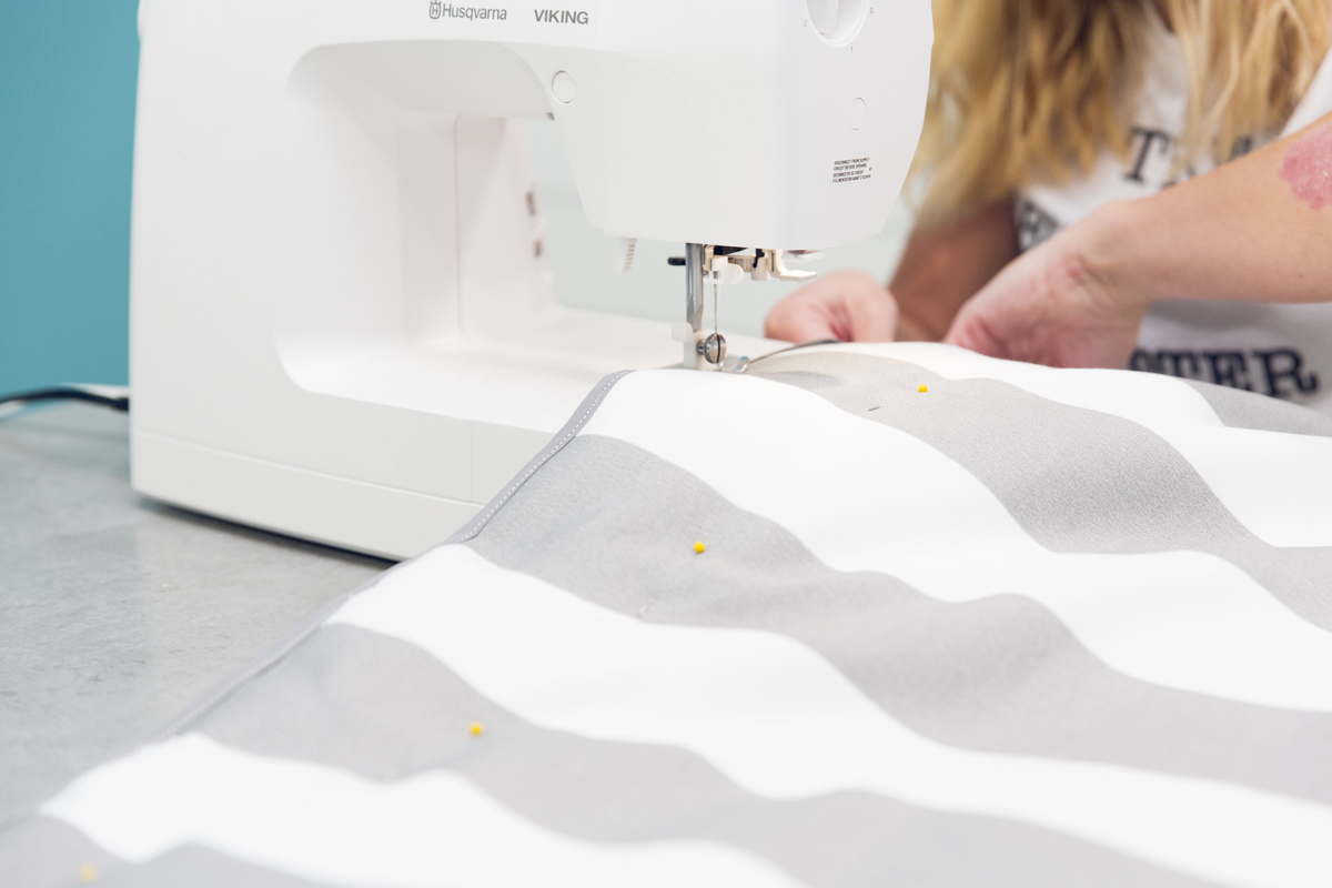 Чтобы уплотнитель надежно оставался на своем месте и не сминался, прошейте несколько стегальных строчек через гамак. Чтобы сделать это аккуратнее и быстрее, сначала скрепите слои постели штифтами – так они будут держаться при работе на швейной машине ровно, не сдвигаясь. Также вы можете прошить ямочки от руки, если не хотите шить машинкой. Это отличный способ добавить креативный вид вашему гамаку с помощью пуговиц или акцентных нитей!