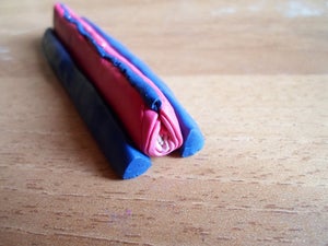 Сожмите получившуюся колбаску, чтобы все ее части слиплись. Затем осторожно растяните ее, чтобы сделать длиннее и тоньше, как мы это делали в шаге 7. Ее толщина должна стать около 5 мм.