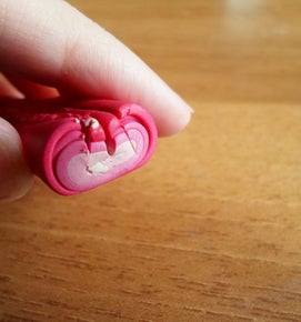 Вы можете оставить его таким, как сейчас, или покрыть слоем прозрачного лака для Fimo, чтобы сделать его более блестящим. Учтите, что готовое изделие можно мыть в обычной воде руками, но нельзя загружать его в посудомоечную машину.