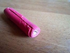 Сделайте три продольных разреза на глиняной колбаске, чтобы они достигали белой сердцевины по всей длине колбаски.