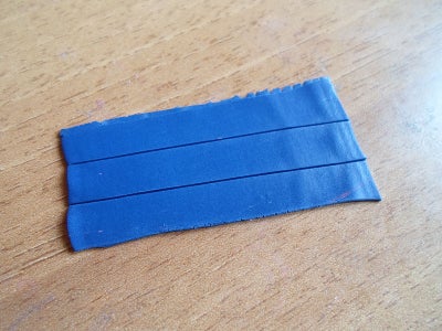 Отрежьте 3 одинаковые полоски длиной равной длине красно-белого рулона и шириной как глубина разреза, сделанного в предыдущем шаге.