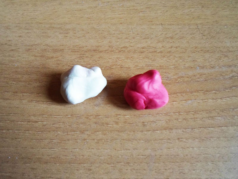 Возьмите один кусок белой и один кусок красной глины. Они должны быть примерно одинакового размера.