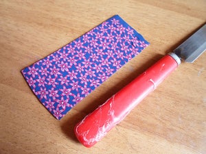Вырежьте из прямоугольника кусок, достаточно большой, чтобы покрыть всю рукоятку ножа.