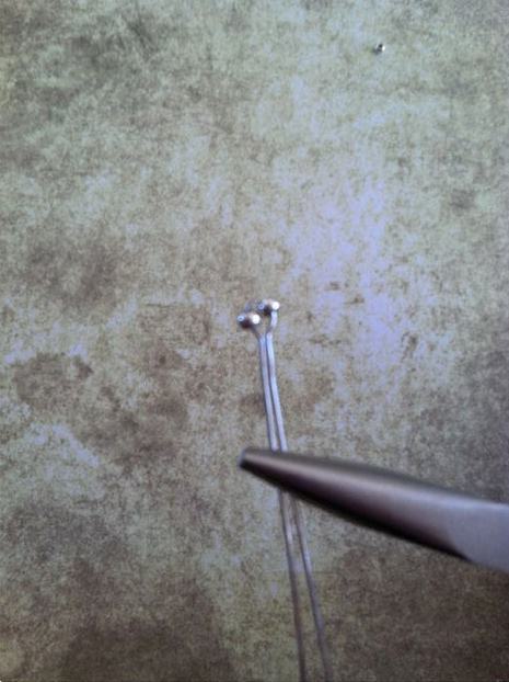 Нанизав 3 бусины для тельца, отрежьте оставшуюся проволоку кусачками, оставив хвостик длиной около 5 мм. Затем, используя круглогубцы, изогните каждую проволочку отдельно в завитки (см. фото).