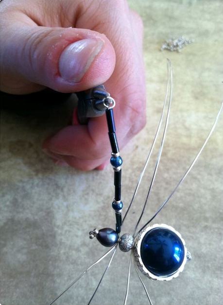 Шаг 8: Нанизывание бусинок на лапки паучка