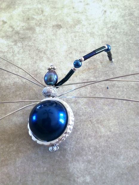 После этого 2 других отрезка проволоки обмотайте, перегнув пополам, вокруг тельца под центральной бусинкой - «сочленением» описанным выше образом (см. фото).