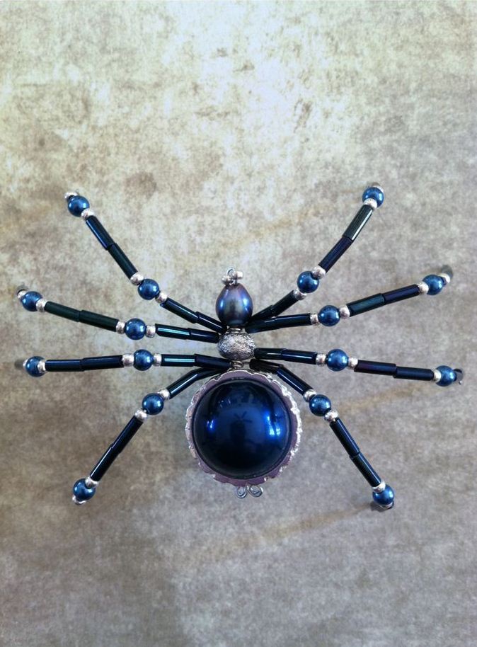 Приклейте булавку к задней части паука, чтобы носить его как брошь.