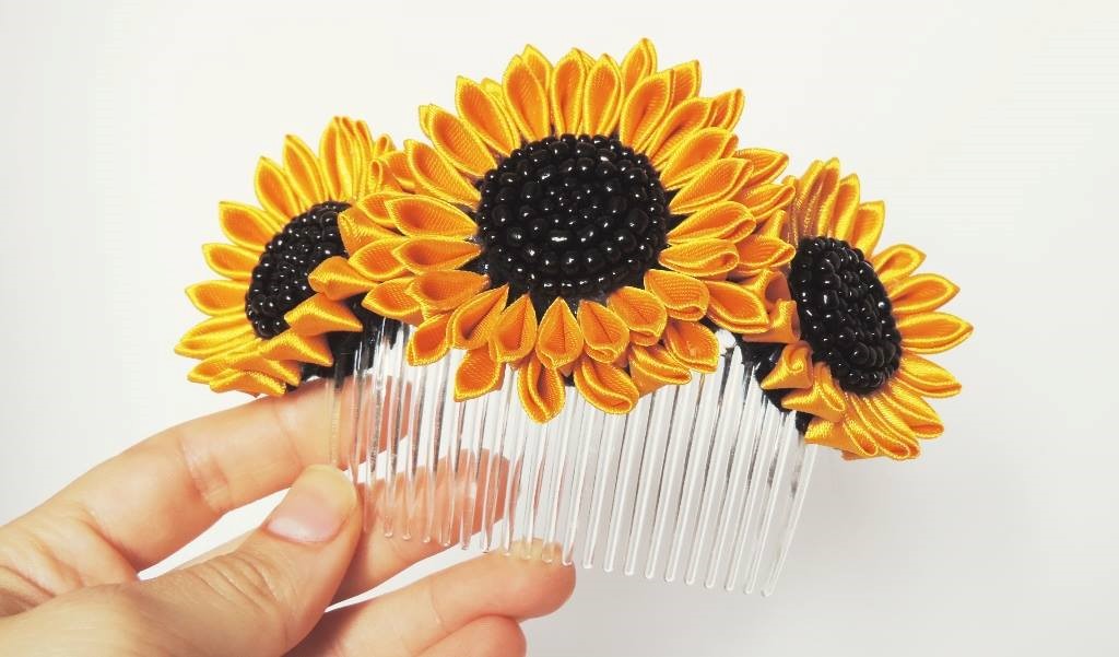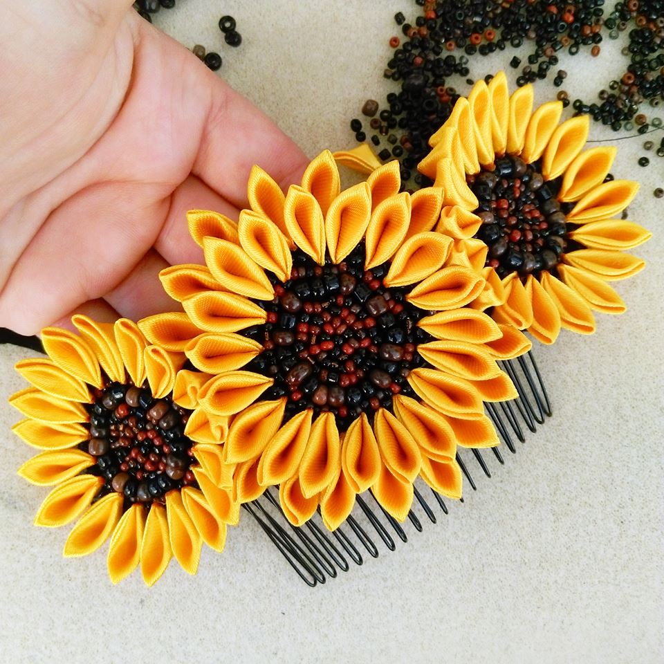 После того, как вам удастся сделать хотя бы один такой подсолнух на гребешок для волос своими руками, вы уже не сможете остановиться.