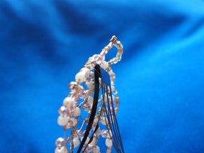 Мы показываем несколько крупных планов своего изделия, чтобы вы могли хорошенько рассмотреть, каким получилось наше бисероплетение, как расположены загибания и скручивания проволоки. Когда вы будете довольны тем, что сделали, переходите к креплению декоративной части к основе заколки для волос. Мы взяли основу для заколки, в которой есть удобные прорези на наконечнике, которые идеально подходят для крепления провода на месте. Но вы можете использовать такую основу, какая вам больше нравится, главное, чтобы вы смогли к ней надежно прикрепить проволоку.