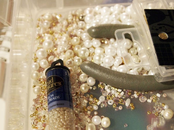 Бусины - мы использовали бусины диаметром 6 мм, стеклянные бусины немного меньшего размера, а также прозрачный розовый бисер