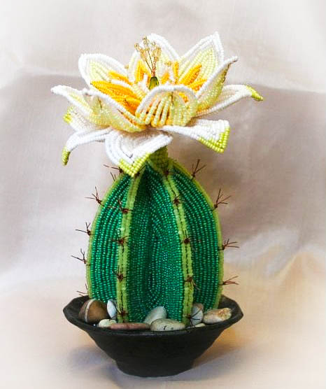 Далее мы предлагаем вашему вниманию еще один простой мастер-класс, рассказывающий о том, как сделать кактус из бисера.