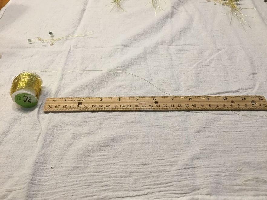 9. Оберните каркас короны плотными витками из оберточной проволоки до места, где будет крепиться следующая ветка. Используйте линейку для измерения расстояния между веточками.