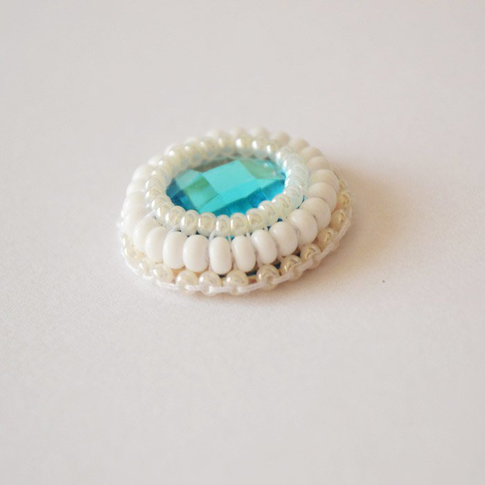Обшитый таким образом кабошон можно использовать для создания броши, носить как кулон, декорировать им одежду и аксессуары.
