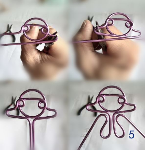 Далее направьте провод на противоположную сторону круга-головы и оберните там точно такой же второй глаз (см. фото). Проволочные концы должны быть направлены по окончании этого шага в одном направлении.