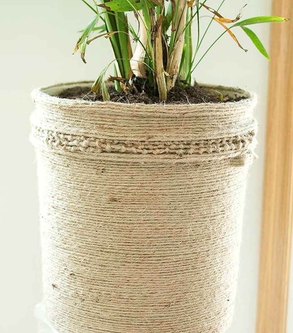Знаете ли вы, что можно сплести такую вот вазу из шпагата? Она станет прекрасным украшением вашего интерьера в качестве дополнительного элемента в дизайнерской композиции. Преимущество этой поделки состоит еще и в том, что с ее изготовлением справятся даже дети.