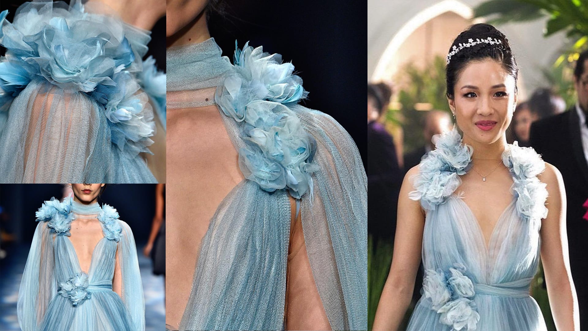 В этом проекте мы вдохновились сделать именно эти цветы из тюля после просмотра фильма «Безумные богатые азиаты», где героиня выходила в прекрасном платье с цветами из голубого тюля от Marchesa.