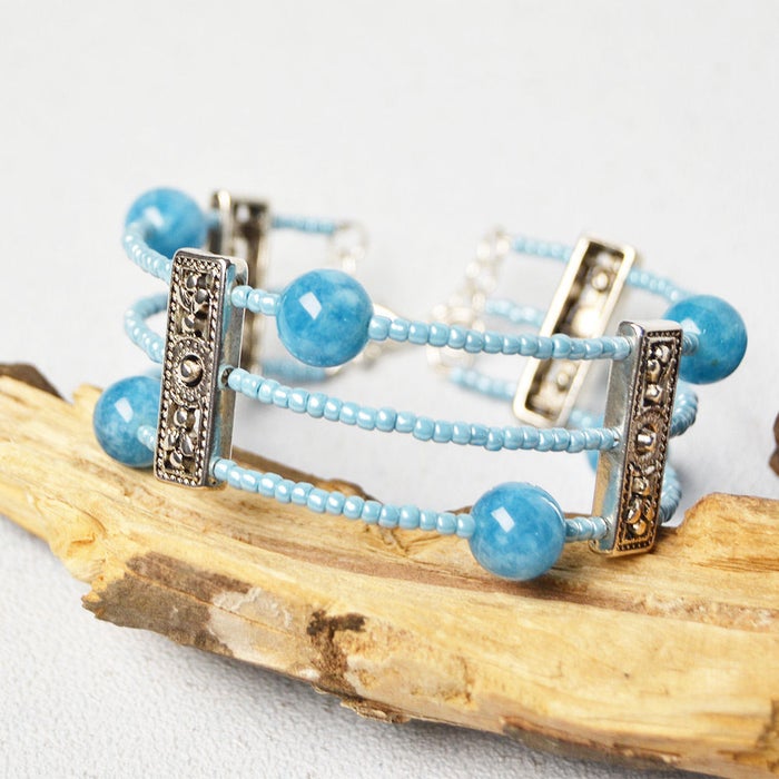 В сегодняшнем мастер-классе мы покажем, как сделать винтажный браслет в тибетском стиле с использованием бусин из натуральных аквамариновых камней и бисера, - для всех, кто желает научиться делать авторскую бижутерию своими руками.