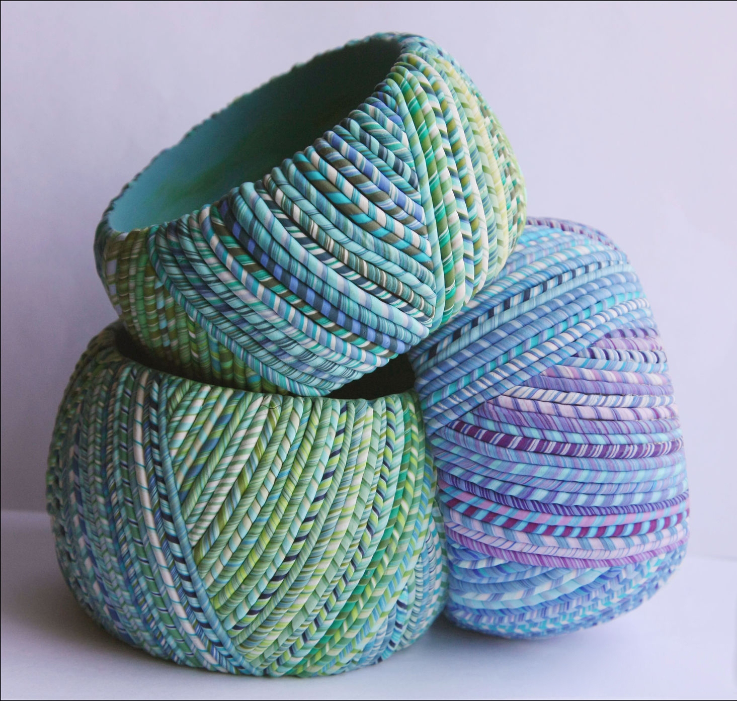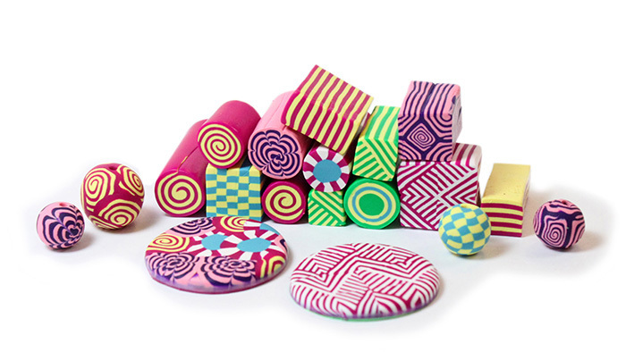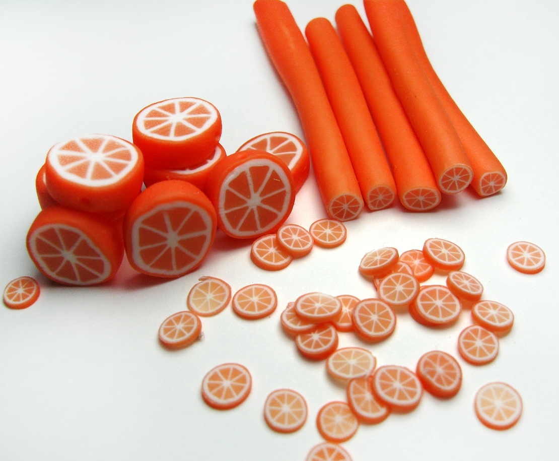 • Нарезка из разноцветных глиняных колбасок. Очень декоративными получаются элементы из многослойных колбасок разноцветной глины, когда из скрученных в плотные рулончики листов глины нарезают ломтики разного сечения.