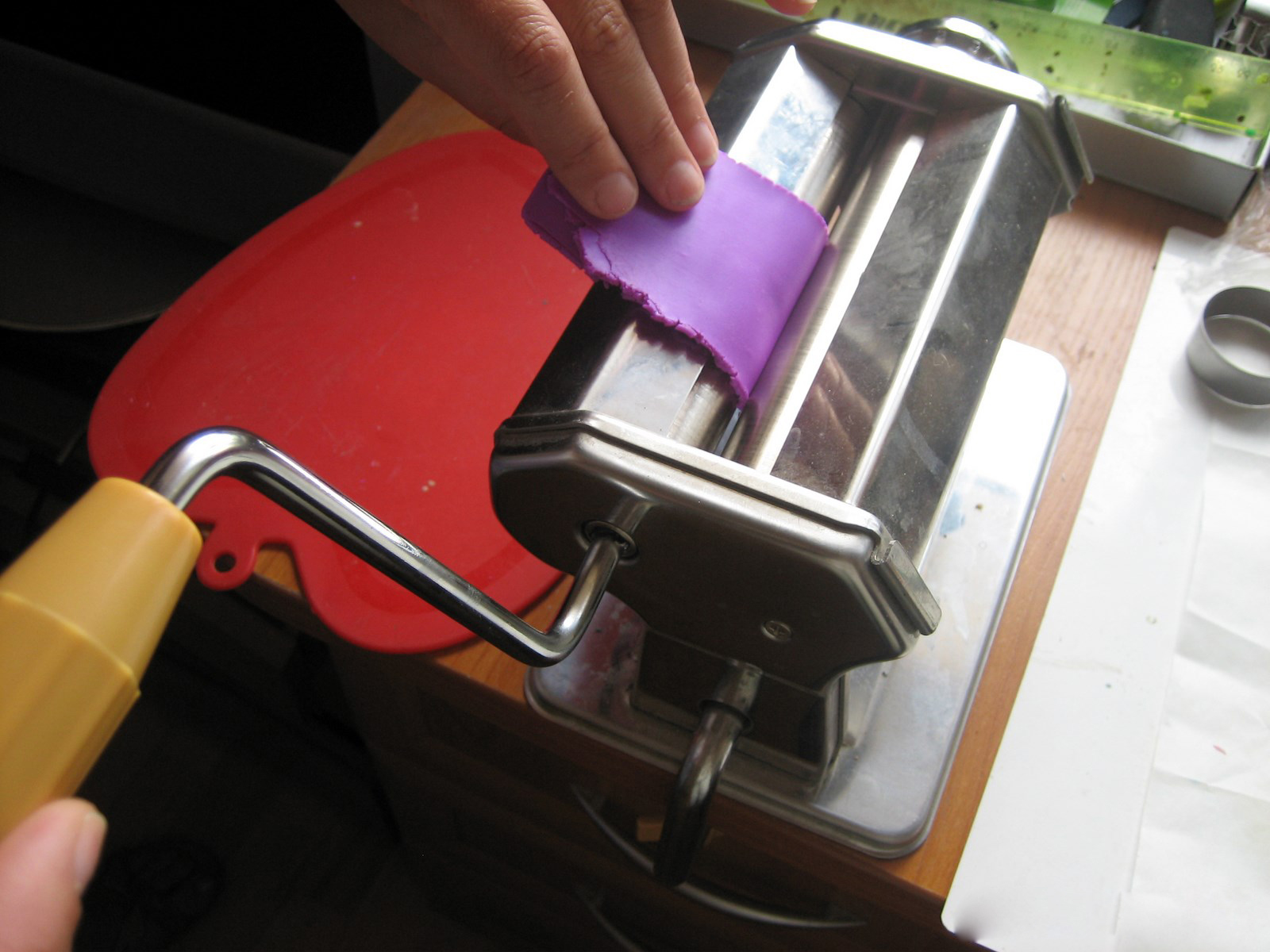 Если такой машины нет, можно подготовить пластику вручную, многократно раскатывая и снова сминая ее. Также можно нагреть ее, используя фен или же тепловую лампу – так она «расслабляется» и становится податливой.
