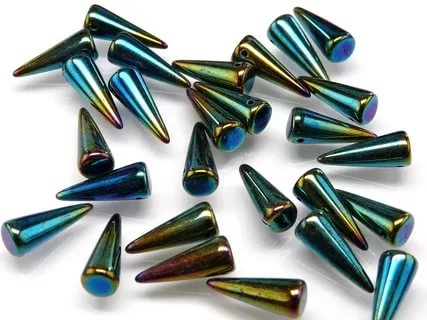 У крупной чешской компании Czech есть популярные формы бусин собственного изобретения, среди которых бусинки Spikes (шипы). Своей формой они напоминают конус с отверстием в его основании.