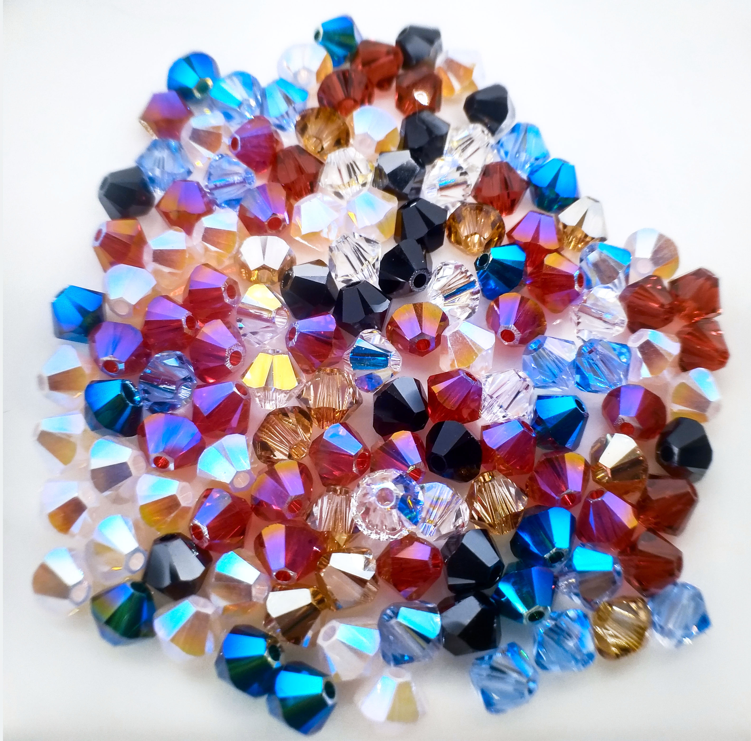 Размеры биконусов сильно варьируются, а стоимость – всегда выше средней. Рукодельницы делают из них изумительной красоты ожерелья и часто используют для оплетки камней и риволи.