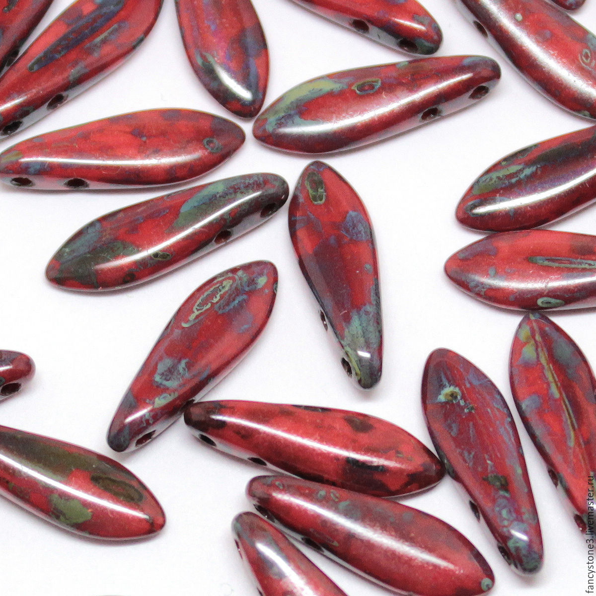 Среди рукодельниц они называются по-разному: даггерсы и кинжалы, лепестки и язычки либо копья. В них есть одно или пара отверстий, расположенных в верхней части бусинок. Обычно из них выполняют удивительной красоты цветки либо подвески.