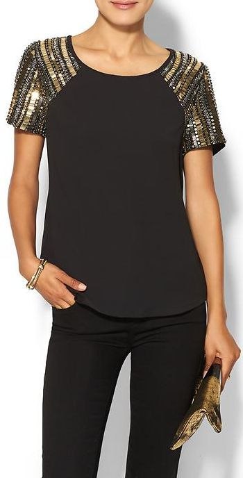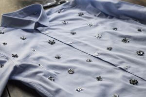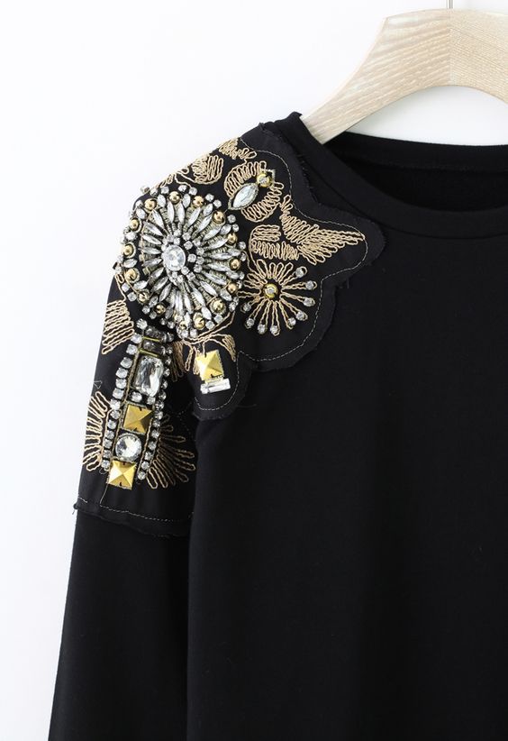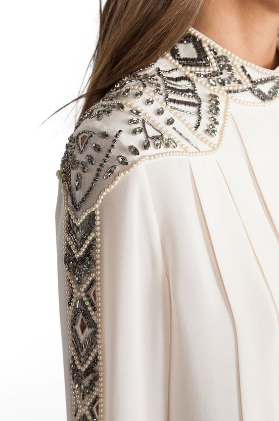 Вышивка с жемчужинками, стеклярусом и стразами превращают строгую и сдержанную офисную рубашку в шикарный эксклюзивный наряд.