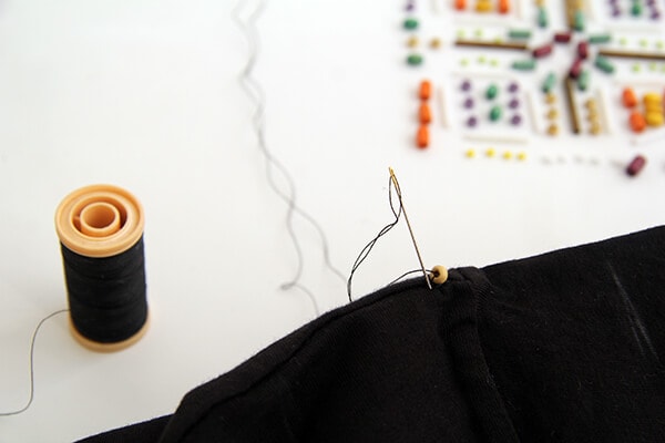Вариантов нанесения бисера на одежду есть несколько. Сначала определитесь с цветом бисера. Композиции из черного и золотого можно назвать беспроигрышными.