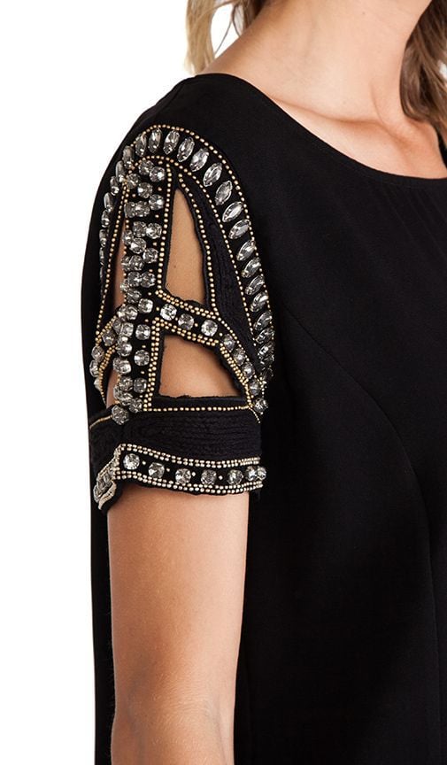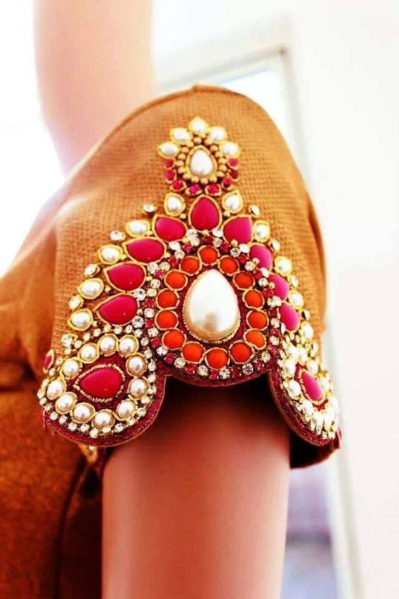 Полностью изменит свой образ можно с помощью небольшой по площади вышивки крупными камнями, бусинами и стразами на рукаве летнего платья.